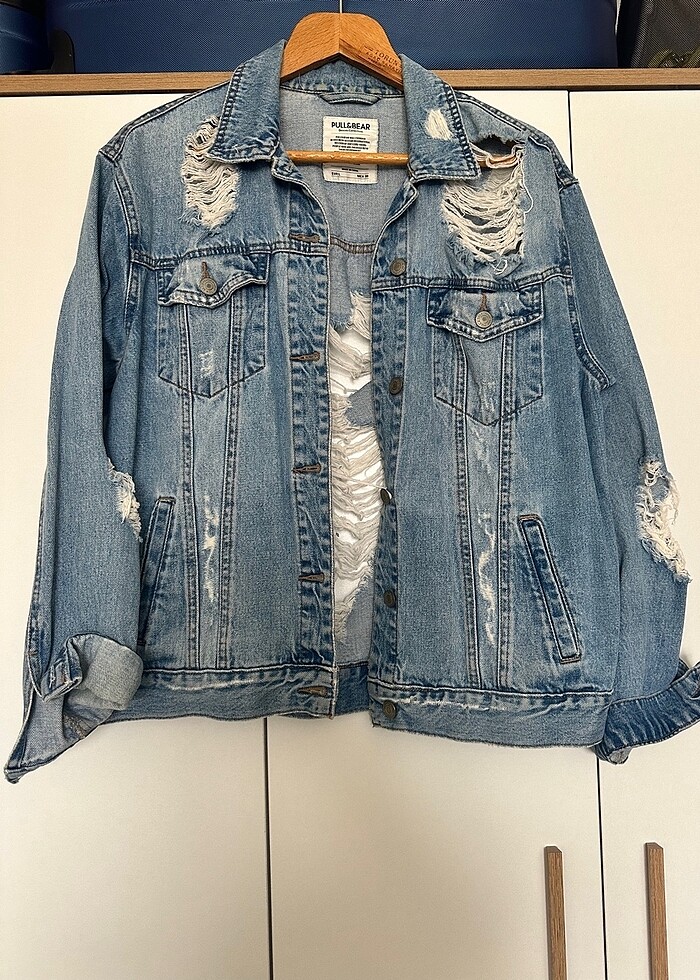 Pull&Bear Denim Yırtık Detaylı Kot Ceket