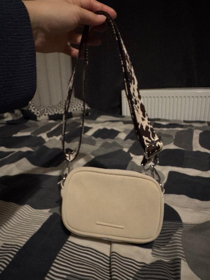 2 kere kullanıldı tertemizz. Kadınlar için beyaz deri gövde ve zebra desenli askıya sahip kol çantası. Sokak stili ve günlük kullanım için uygundur.