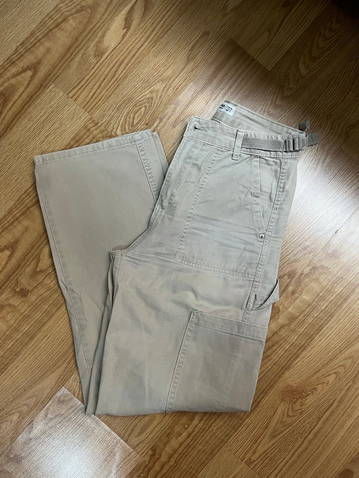 Duruşu kumaşı şahane bir jean düz kesim kargo cepli belindeki detaylar çok hoş duruyor sol bacağının arkasında bi su lekesi mevcut bu sebeple fiyatı uygun tuttum detaylar eklenmiştir