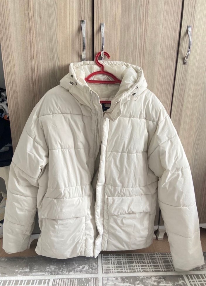Beyaz renkli içi tüylü erkek kışlık mont baya sıcak tutuyor pull&bear ürünleri satan yerden aldım etiketi onlar kesti göründüğü gibi temiz ve güzel bir mont
