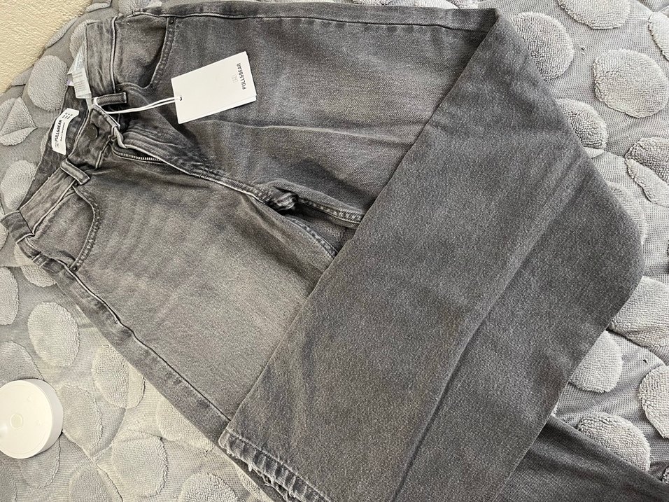 PULL&BEAR Gri Düğmeli Kadın Denim Pantolon