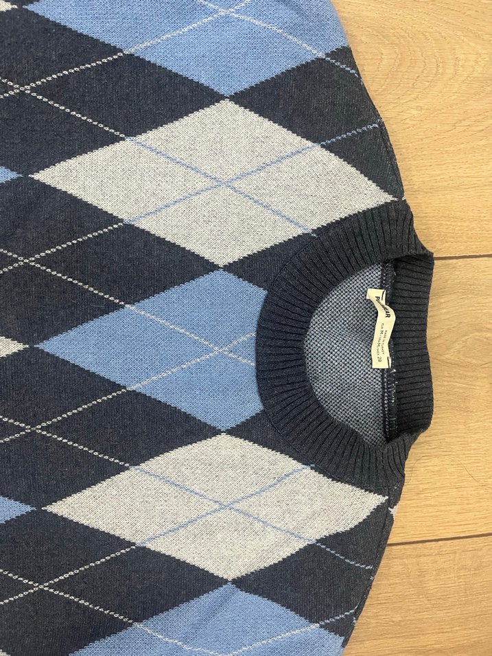 Pull&bear Gri Ekose Desenli Kadın Örgü Yün Kazak