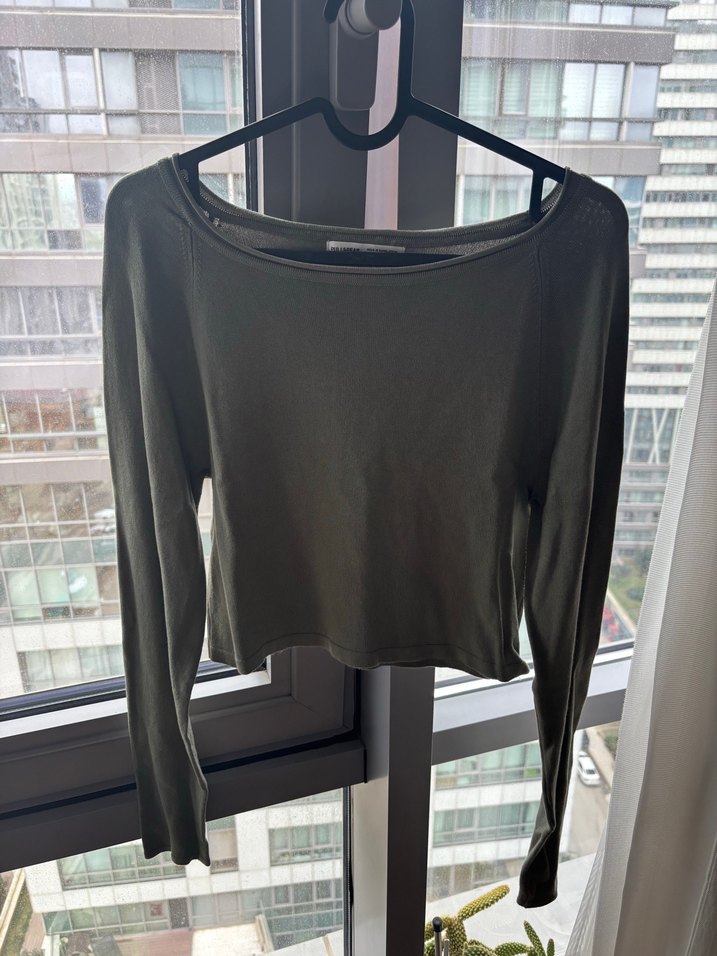 Pull&Bear Haki Uzun Kollu Crop Triko