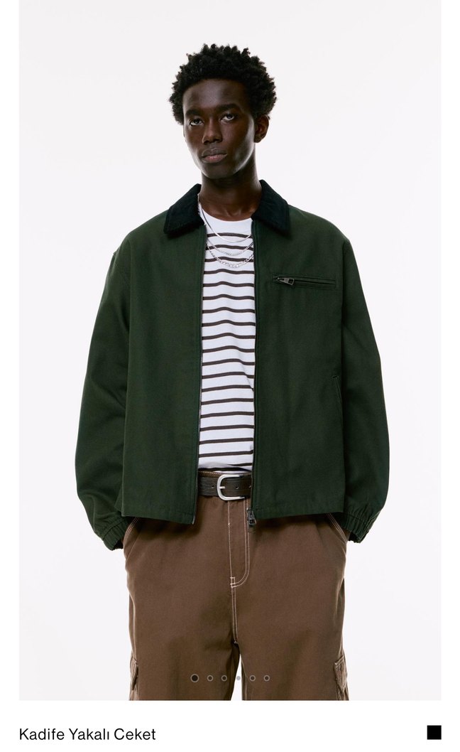 Erkek ceketi koyu haki renkte, çıtmalı yaka ve uzun kollu. Regular fit ve midi boyda, günlük rahat kullanım için sentetik kumaştan üretilmiş. Göğüs kısmında fermuarlı cep bulunur.