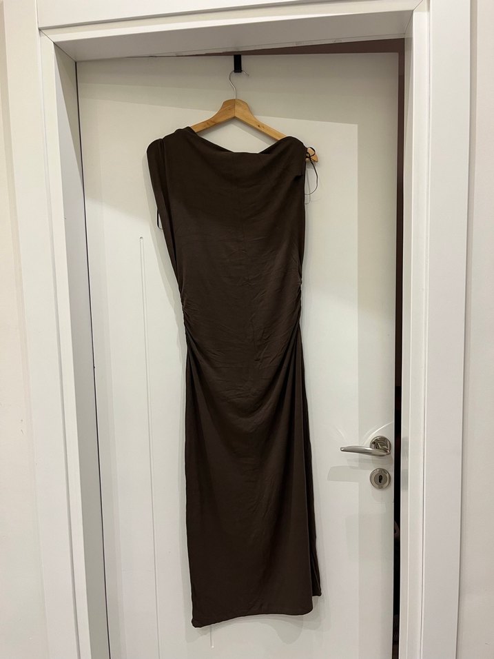 hic giyilmedi ve etiketli. kayik omuzlu. bel kismi iki yandan buzgulu. viskoz kumas.