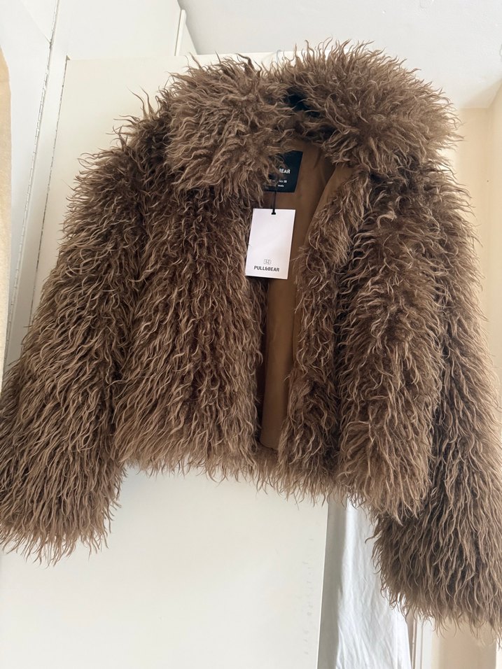 Pull bear yeni ve etiketli kıvırcık suni kürk kaban.