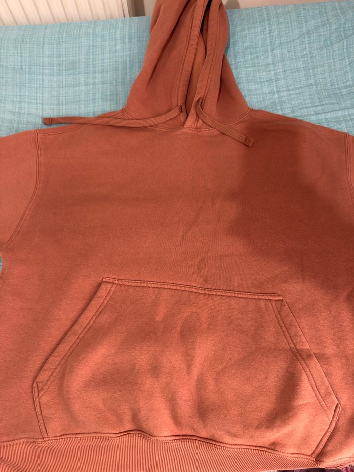 Kadın kahverengi kapüşonlu sweatshirt, yuvarlak yaka ve uzun kollu, bol kesimdir. Yumuşak ve sıcak kumaştan yapılmıştır, önünde kanguru cepli, günlük kullanıma uygundur.