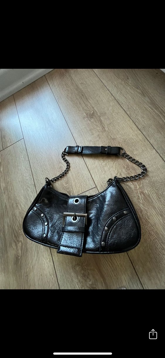 Kemer tokalı, siyah deri çanta, zincir askılı ve gotik rock punk tarzında. Temiz kullanıldı deformesi çiziği yoktur