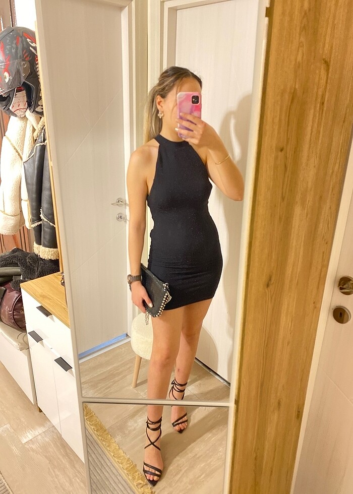 PULL&BEAR kuruvaze yaka siyah sırt detaylı kısa simli abiye esnek hiç kullanılmadı