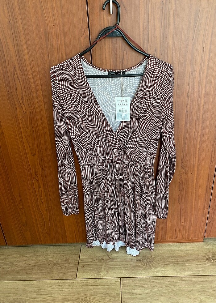 Pull&bear kısa,uzun kollu elbise kahverengi desenli Boy uzunluğu önden 80 cm arkadan 85 cm