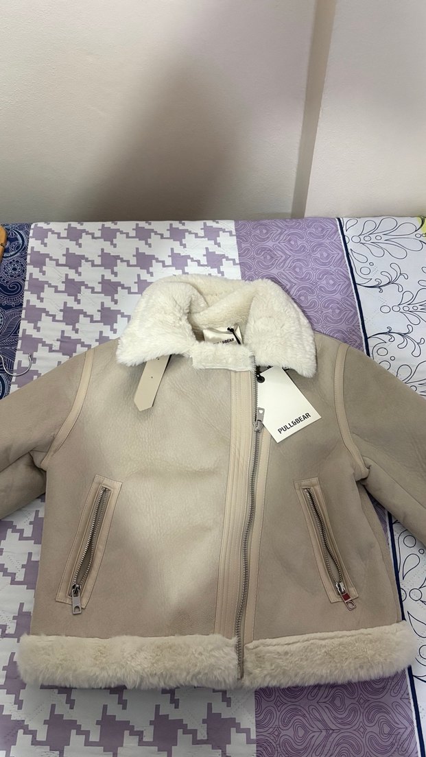 Yumuşak kürklü detaylı yakası ve uzun kollu, bej kısa ceket, günlük kullanım için rahat ve sokak modasına uygun. Etiketi üzerinde. İade etmeye gitmediğim için süresi geçti kalıbı dardır.