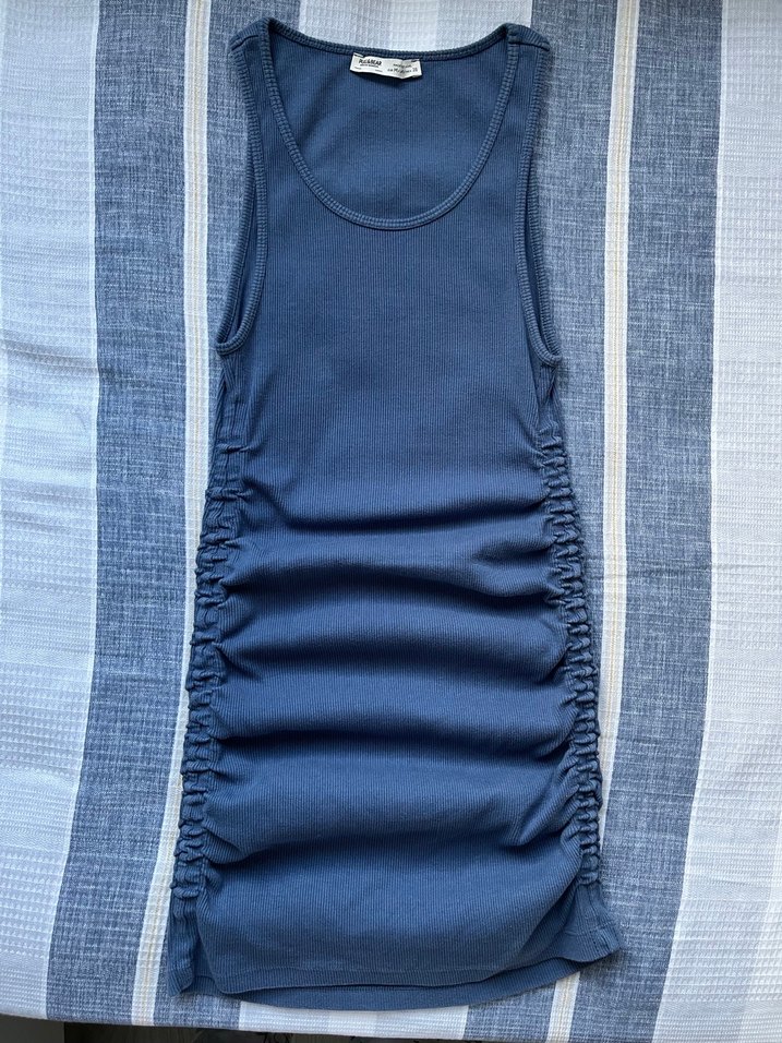 Ürün yenidir. Oldukça kaliteli ve orijinaldir.Yüksek yakalı, kolsuz lacivert elbise, normal uzunlukta ve vücuda oturan kesimde. Desensiz ve sade tasarımlı. Yanlarında ayarlanabilir dikiş kısımları bulunur. Çok şık ve sizi zarif gösterecek bir parçadır. En:33 cm, boy:75 cm’dir.