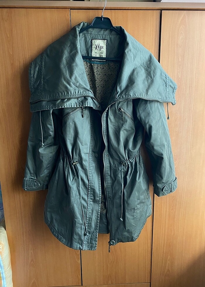 Pull & bear M haki yeşil pelerin yakalı parka trençkot