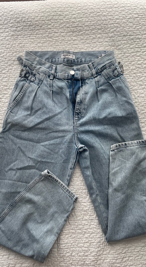 Pull bear marka,kot pantolon, kemerli ve rahat kesimdir. Midi boyda, desensiz ve günlük kullanıma uygundur.
