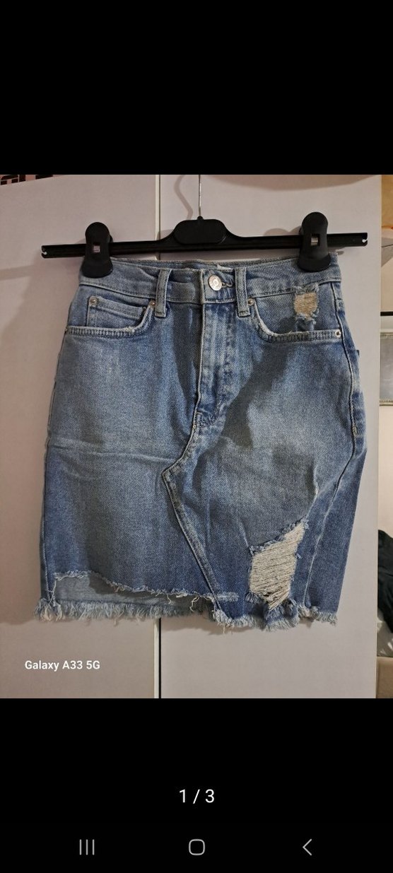 Pull&bear Mavi Yırtık Denim Mini Etek