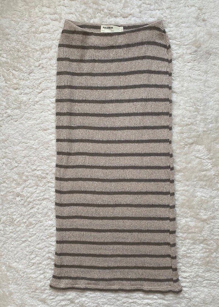 Çizgili rustik midi etek. İç gösterir plajda giymeye uygundur.