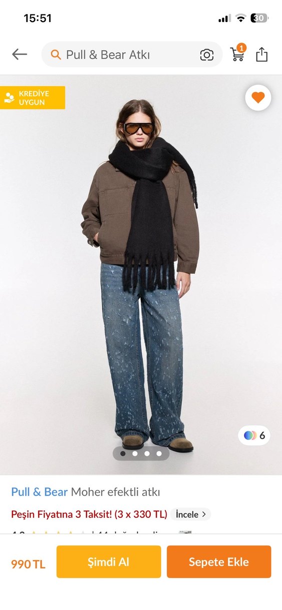 Pull & Bear imzalı, moher efekti ve püsküllü kadın atkı bir kez kullanıldı