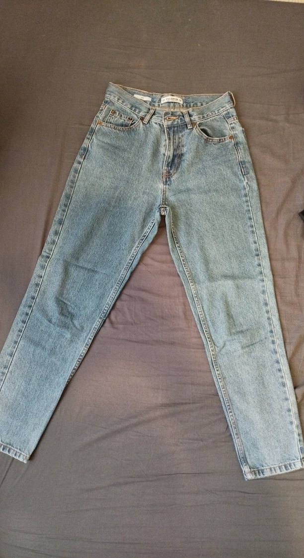 ince ve esnek olmayan bir kumaşı var. arka kemer kısmında sökülme var yukarı çektirmeyince görünmüyor kolayca dikilebilir.