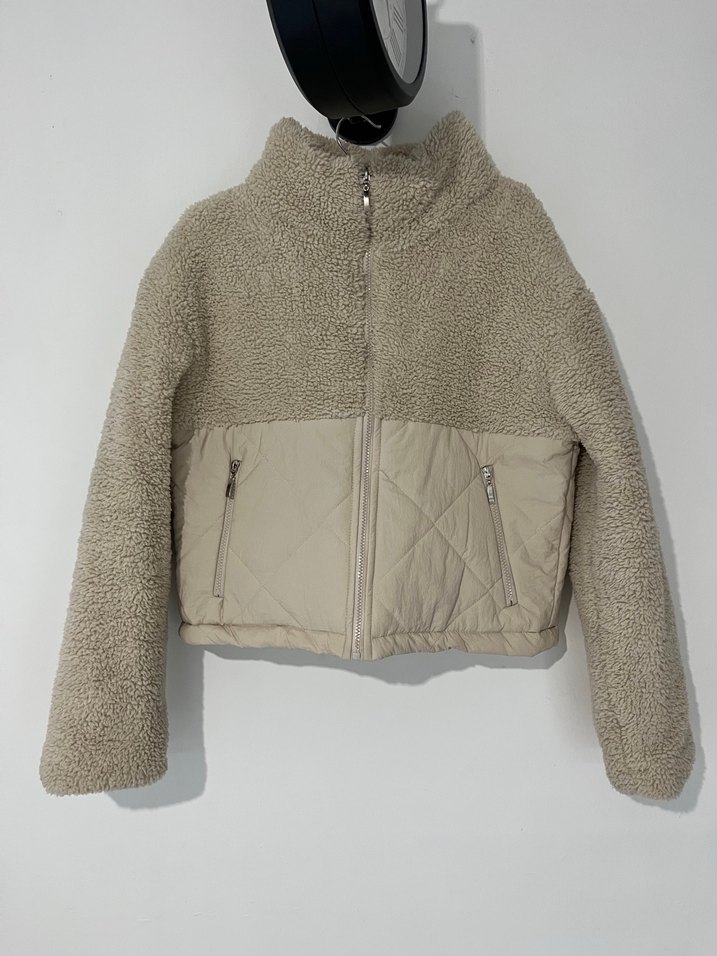 Yüksek yakalı, uzun kollu ve kürk detaylı peluş bej kış montu. Yumuşak fleece kumaştan yapılmış, günlük kullanıma uygun rahat kesim. Aldığımdan beri hiç giymedim dolabımda duruyor, spor giyinemediğim kombinleyemediğim için satıyorum rengi fotoğrafta görünenden biraz daha açık krem renkte ❄️