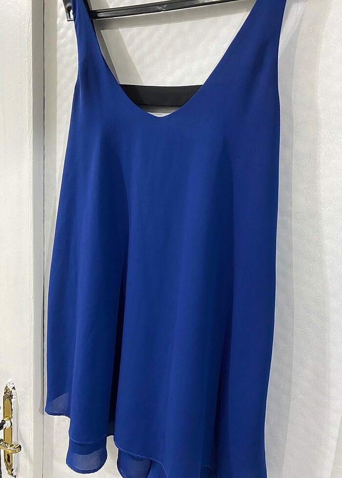 Hic giyilmesi.sorunsuz sifirdir.sifon iki kat ve astar vardir sax mavisi kalin sivah askili arkasinda sivah vine askida oldugu gibi siyah sifondan askisi vardir. çok şık denemeden aldim çok begenip benim kol altimdan kastigi için giyemedim hic tişört gibi kısa da değil salaş görünümünü hava katıyor ben deri tayt üzerine giymek için aldım nasip olmadı güle güle kullansin alan kisi