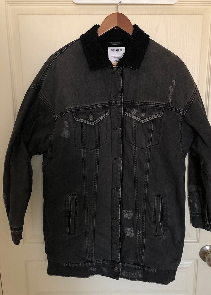 Kot kalın düğmeli eskitme ağartma detaylı siyah over size