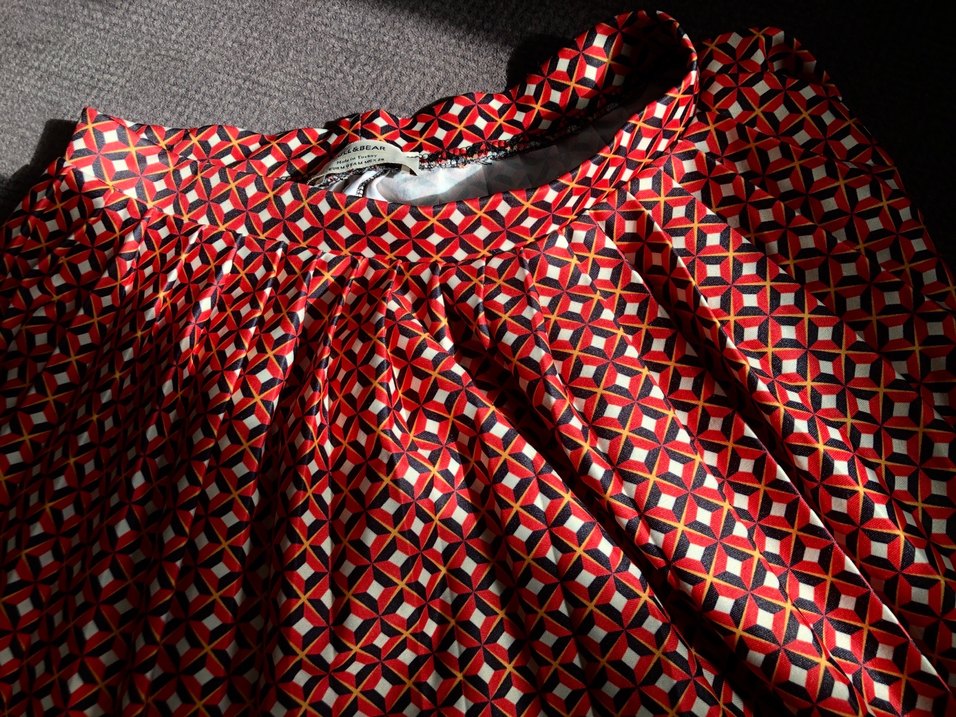 Renkli, desenli ve pileli uzun eteği, sentetik kumaştan üretilmiş, bol kesim ve retro sokak modası tarzında günlük kullanım için uygundur.