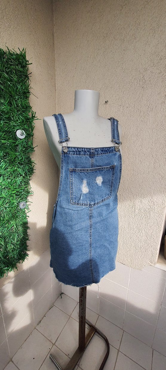 Mavi denimden, askılı ve ayarlanabilir tokalı midi tulum. Ön cepte yıpranmış detaylar, salaş ve kolsuz tasarım. Günlük kullanım için uygun. ölçüleri resimlerde mevcut yepyeni sorunsuzdur