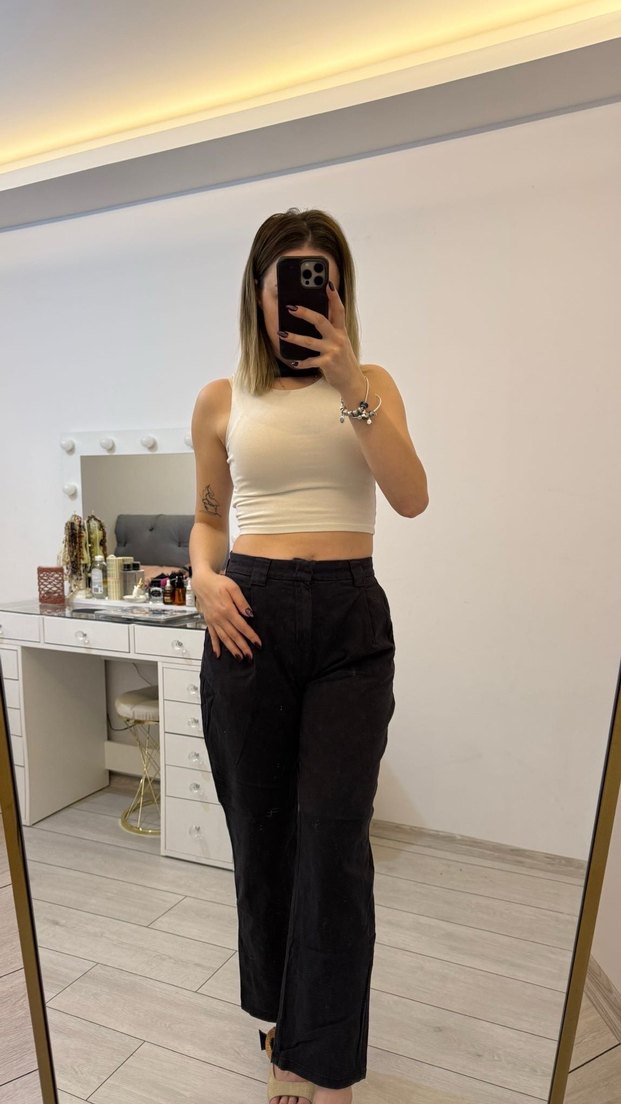 Bej renkli, midi boy, kumaştan üretilmiş bu pantolonlar, sade ve desen içermeyen tasarımıyla rahat ve şık bir görünüm sunar. Günlük kullanıma uygun, fitted kesim streetwear tarzına uygundur.
