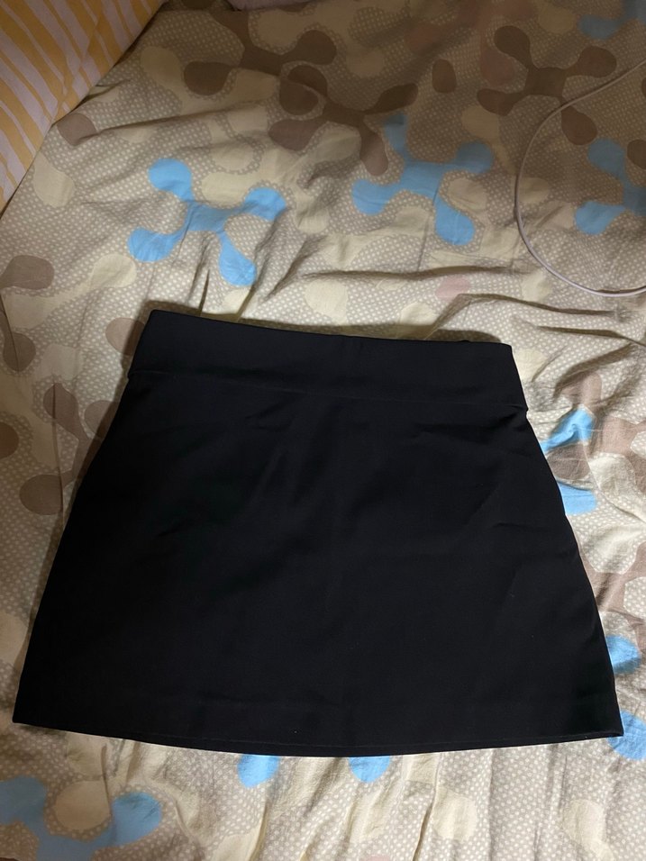 Düz siyah mini etek, dar kesim ve midi boyda, pürüzsüz sentetik kumaştan üretilmiştir. Sokak stili ve dış mekan kullanımı için uygundur.