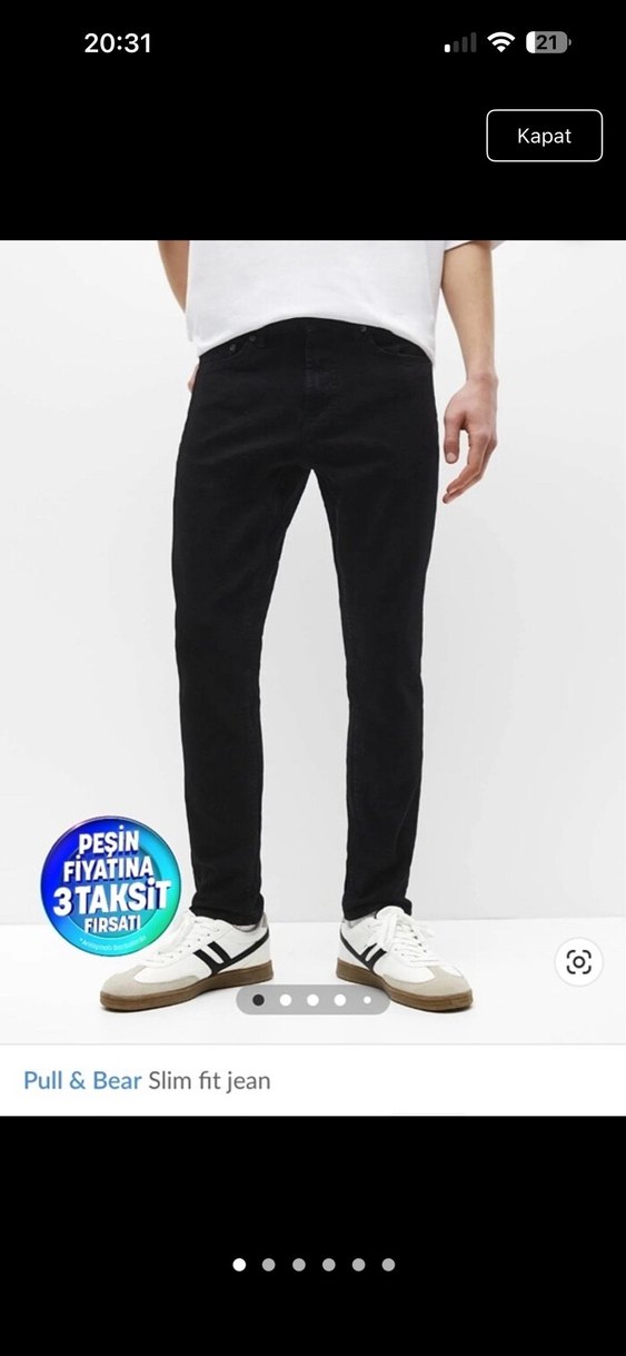 Pull & Bear siyah slim fit jean, normal boy ve regular fit kesim ile günlük rahat sokak stili için uygun. Sorunsuzdur