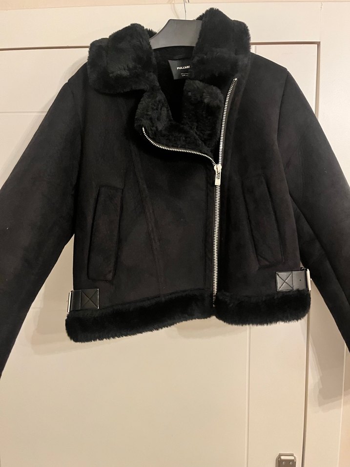 Pull bear Siyah Süet Kürklü Kısa Biker Ceket
