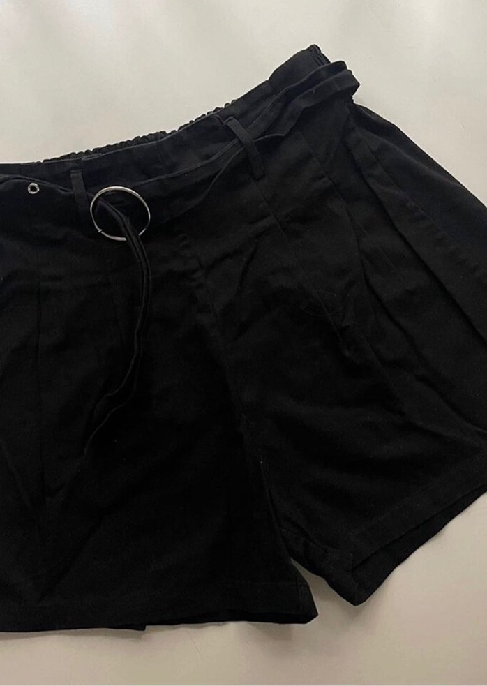 Kemer detaylı siyah şort, rahat kesimiyle günlük kullanıma uygundur.