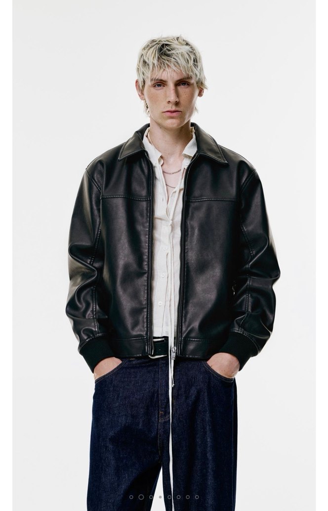 Siyah deri erkek ceket, yakalı ve uzun kollu. Regular fit ve midi boyda, günlük kullanıma uygun rahat bir parça.