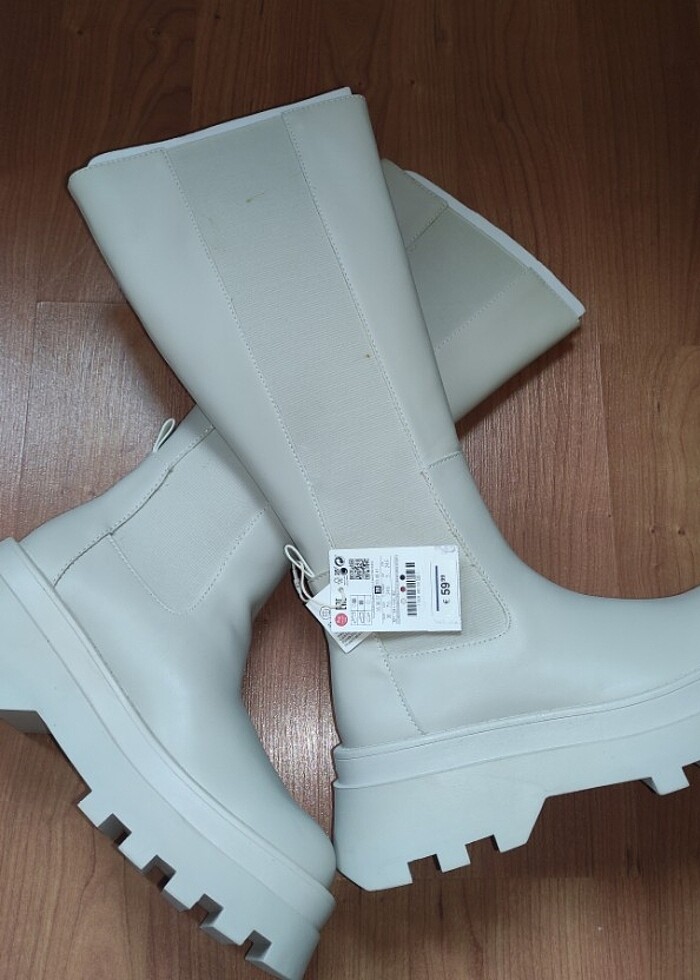 PULL&BEAR TIRTIKLI DÜZ KALIN TABANLI BEYAZ CHELSA ÇİZME