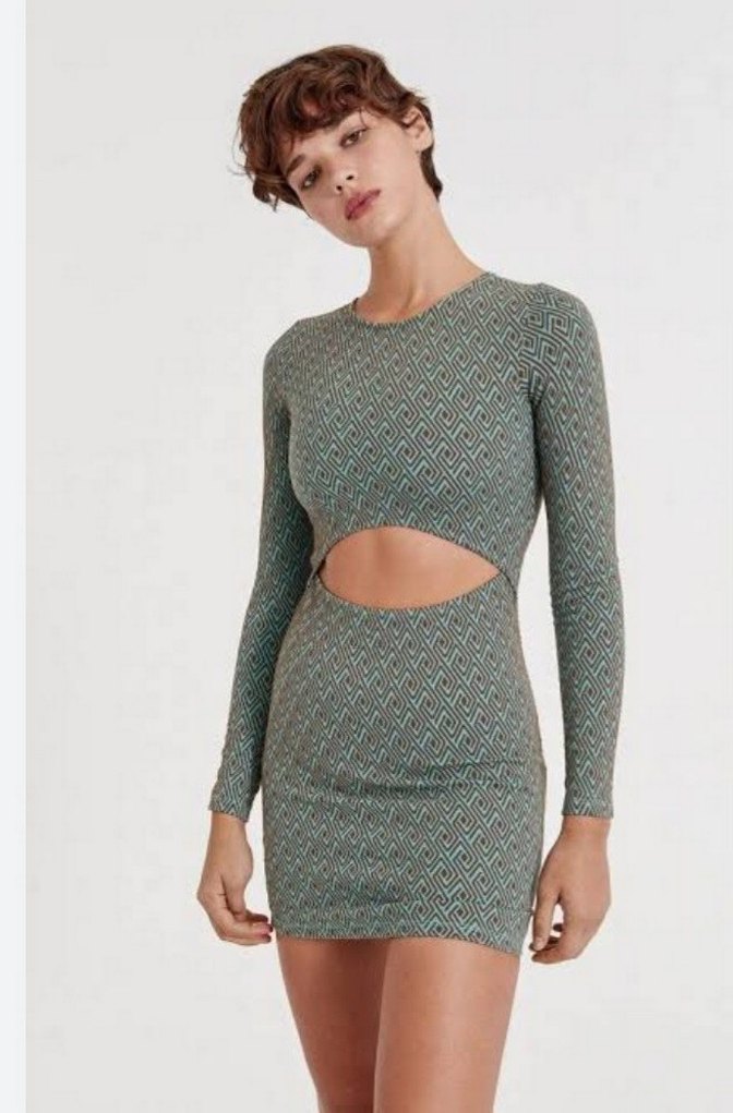 Pull&Bear bel dekolteli kabartma desenli esnek yapıda elbise hiç giyilmeden dolapta bekleyenlerden