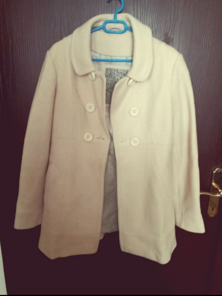 Pull & Bear XDYE Krem Kaban. Şık göğüs bölgesinden 4 düğmeli, göğüse oturan aşağı doğru hafif çanak modeli açılan bir kaban. Çok az giyildi. Tertemiz. Kazak fiyatına. Bedeni 40 ama 38 bedene de olur