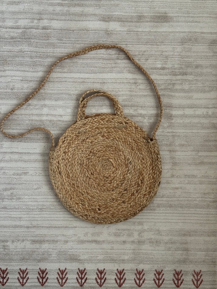 İçi dışı örme hasır çanta yaz ve tatil için çok uygun, fotoğraflar aynı gibi duruyor ama biri ön biri arkadan kusuru yok