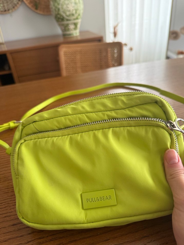 PULL&BEAR neon yeşili çapraz çanta, fermuarlı cepleri ve yumuşak sentetik kumaşıyla trend sokak stili için uygun çantanın alt kısmındaki kirlenme detayları vardır benim vaktim olmadığı için için ilgilenemedim ama muhakkak temizleyince çıkacaktır