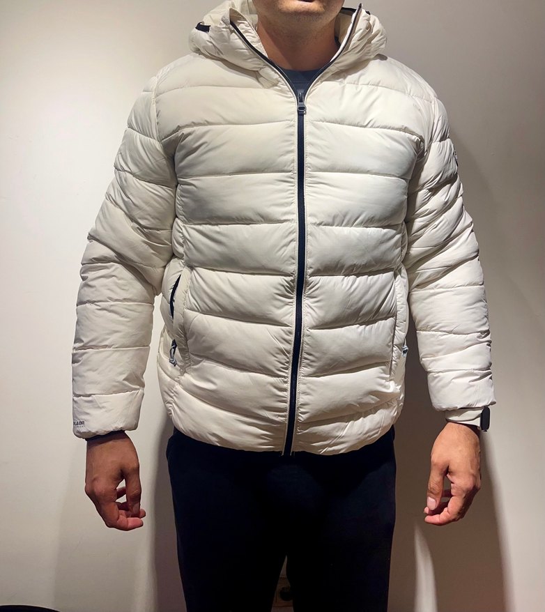 Beyaz renkte, kapüşonlu ve fermuarlı cepleri olan şişme erkek mont. Fermuara bitişik iç cebi bulunmaktadır. Uzun kollu, soğuk ve rüzgara dayanıklı ve günlük rahat kullanım için yumuşak kumaştan üretilmiştir. Ürün hediye gelmiş olup, renk tercihi sebebiyle kullanılmamıştır. Etiketi hediye olduğu için bulunmuyor ama sıfır olup kullanılmamıştır. İzmir/Hilltown Pull&Bear mağazasından alınmış olup, orjinal üründür. Alıcısına hayırlı uğurlu olsun, Mutlu günlerde kullanılsın.