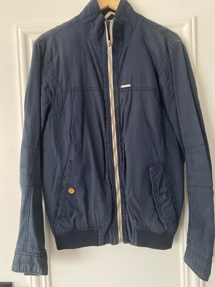 Urun temiz kullanilmistir. Deformesi yoktur. Lacivert kumaştan fermuarlı, uzun kollu ve bol kesim erkek ceketi. Notlu yakasıyla günlük rahat kullanıma uygundur.
