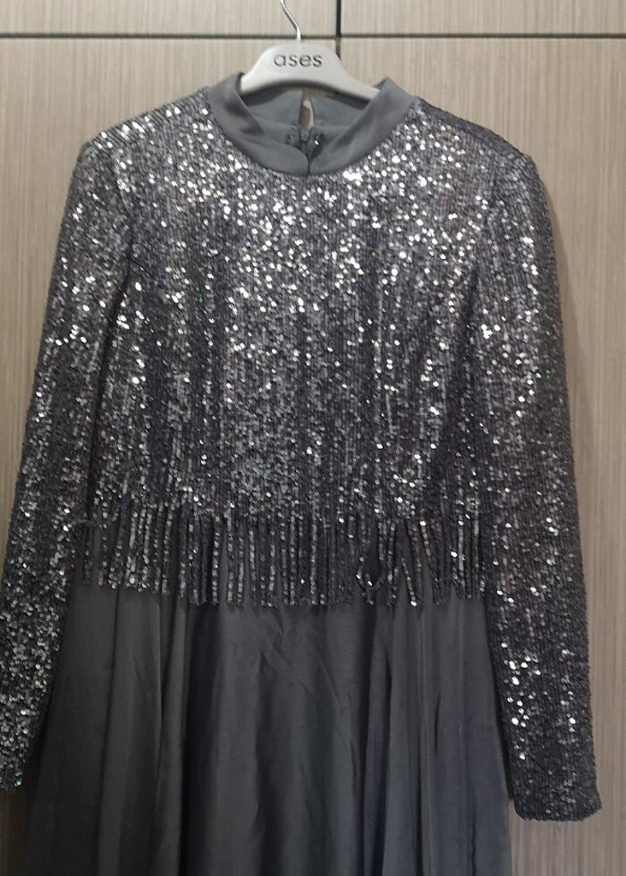 Pullu tesettür abiye iki kez giyildi şalı ile birlikte verilecektir Göğüs :50 cm Boy :150 cm Simli tesettür abiye