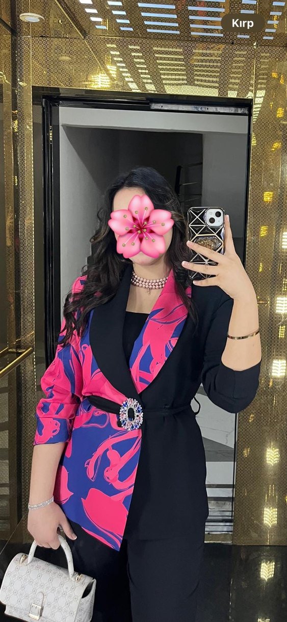 Pullu Bağlamalı Pembe Siyah Kadın Blazer