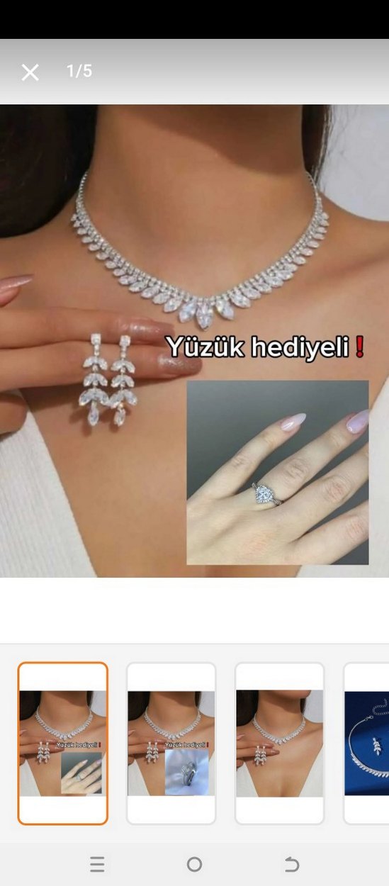 Pullu detaylı beyaz çağdaş takı seti, gösterişli düğünler için uygundur. Kolye, küpe ve hediye yüzük içerir. ✨