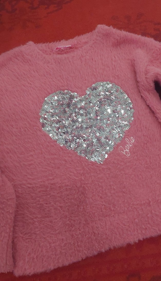 Pembe, pul işlemeli kalp desenli yumuşak dokulu kazak. kız çocukları için.