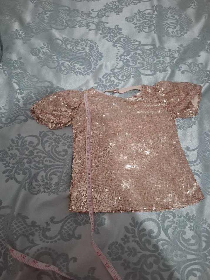 3-4 yaş ile uyumlu pullu kız çocuk bluz sırtı kalp desenli açık hiçbir sorunu yok ölçü detayı fotoda var.