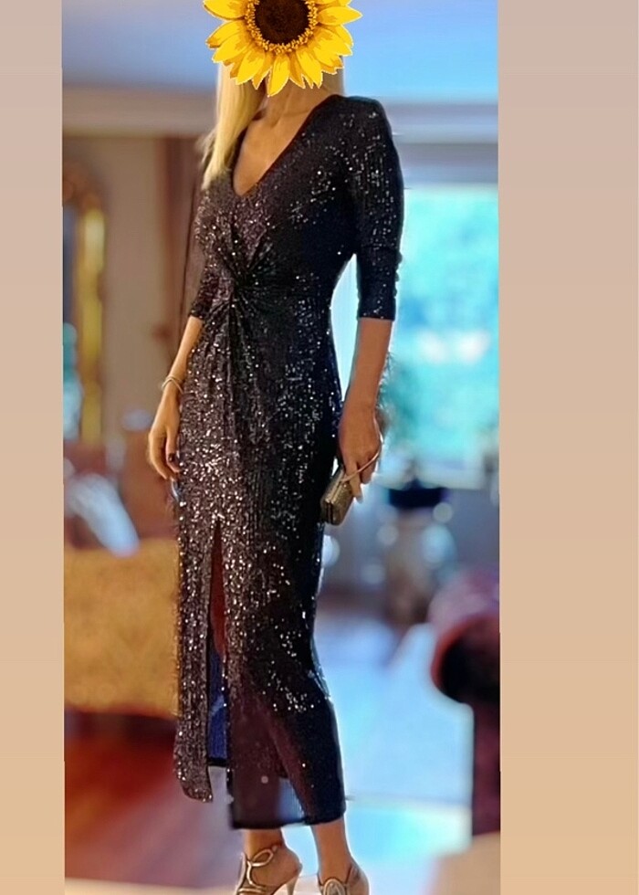Pullu lacivert midi gece elbisesi 36 beden