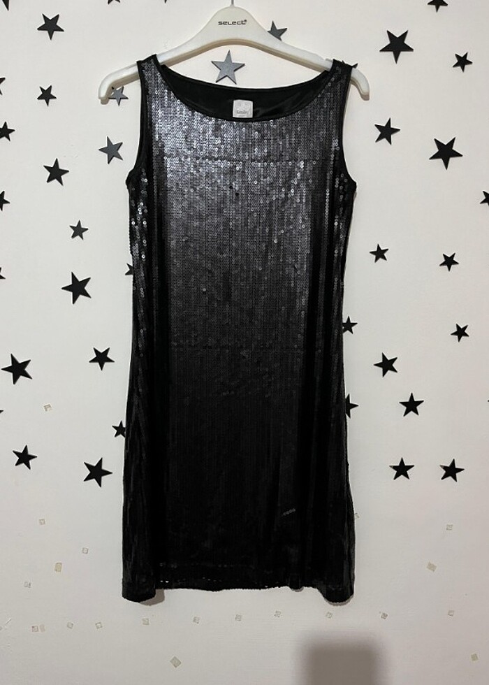 Pullu siyah kısa elbise