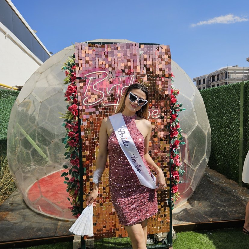 Pullu, straplez ve askılı tasarıma sahip, vücuda oturan pembe mini elbise. Parlak ve gösterişli, parti ruhuna uygun bir model. ✨