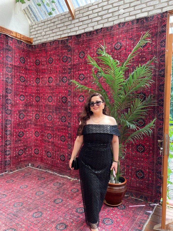 Pullu taşlı Detaylı Siyah Uzun Abiye Elbise