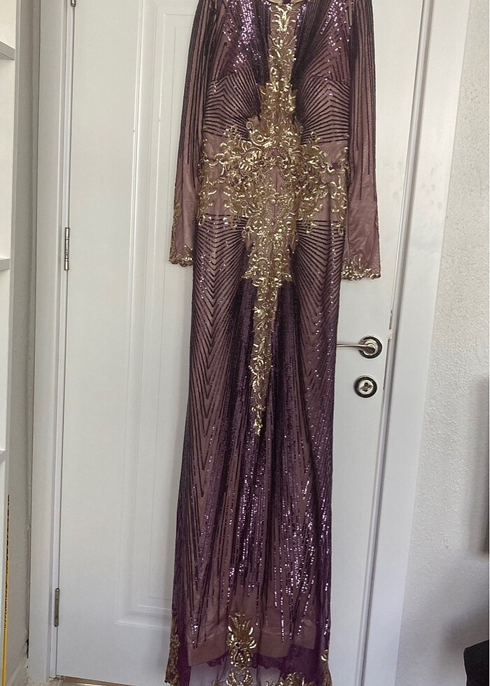 Elbisenin görselde göründüğü gibi mor renkli eki vardır. İster onunla ister onsuz kullanılabilir